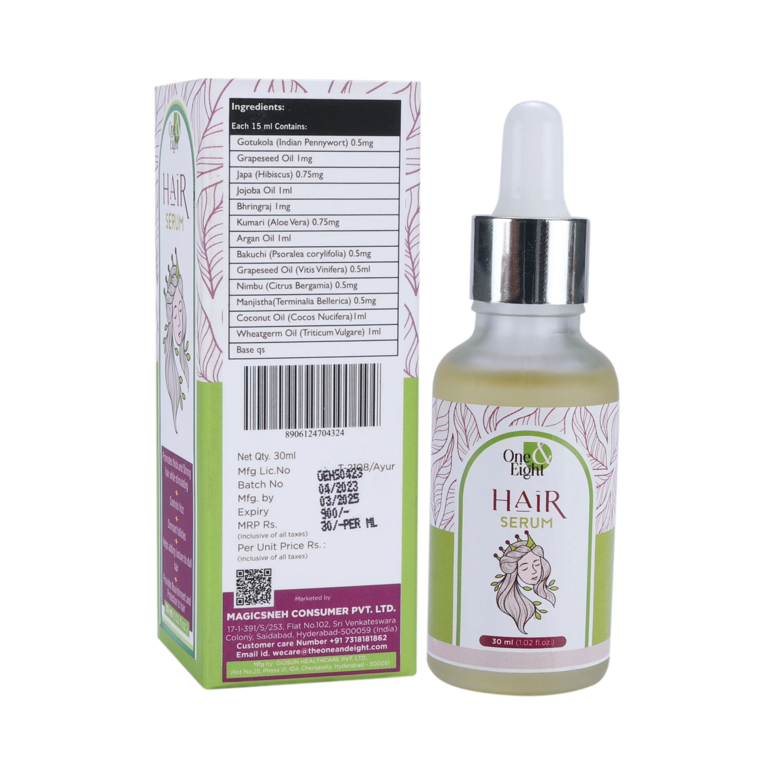 Strengthening hair: One & Eight Hair Serum that contain strengthening ingredients like Gotukola, Bhringraj, and Wheatgerm Oil can help to strengthen your hair from within, reducing breakage and promoting healthy growth.